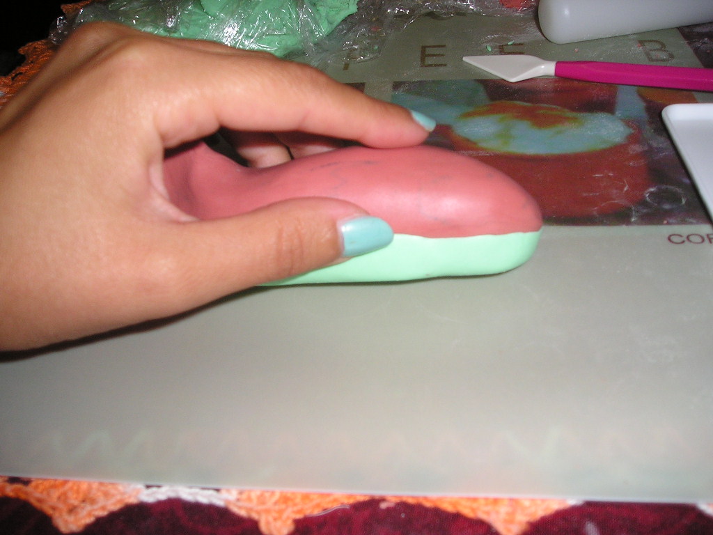 4. Para a base verde do avião, estiquei e cortei pasta à medida e no fim alisei com os dedos;